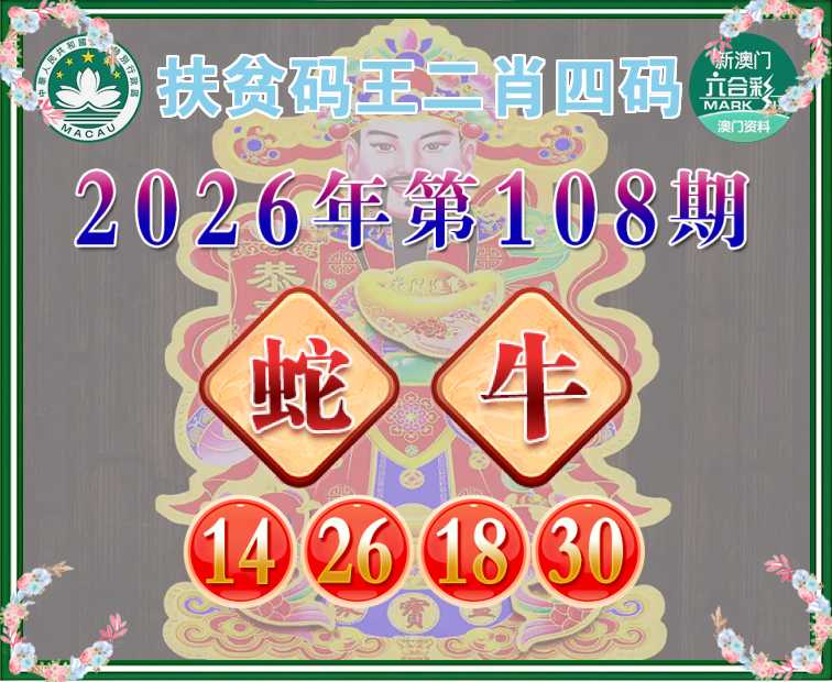 108期: 扶贫码王 🧩二肖四码🧩【蛇牛】【14.26.18.30】开:狗45
