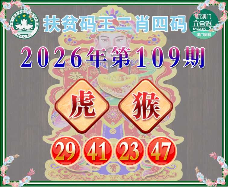 109期: 扶贫码王 🧩二肖四码🧩【虎猴】【29.41.23.47】开:兔16