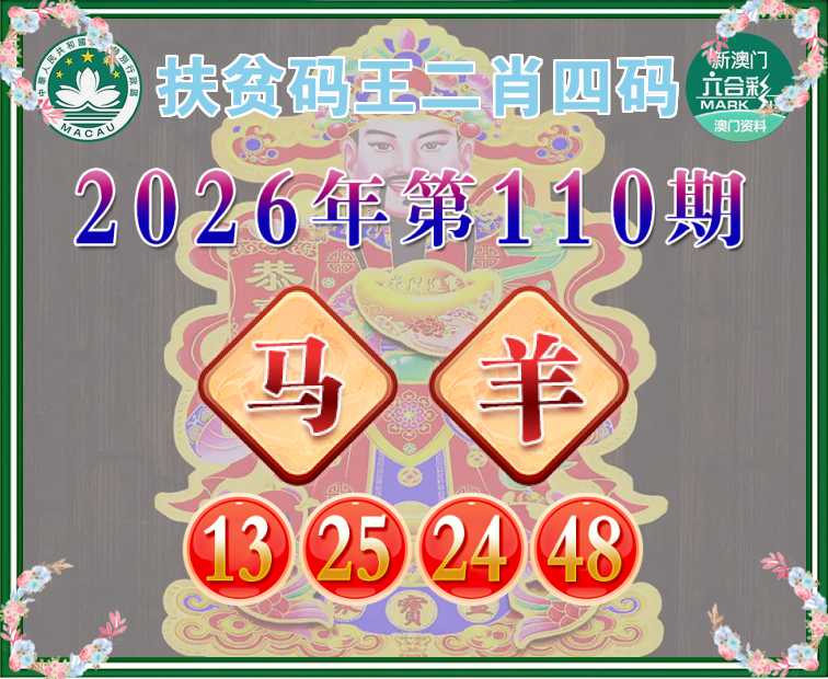 110期: 扶贫码王 🧩二肖四码🧩【马羊】【13.25.24.48】开:牛30