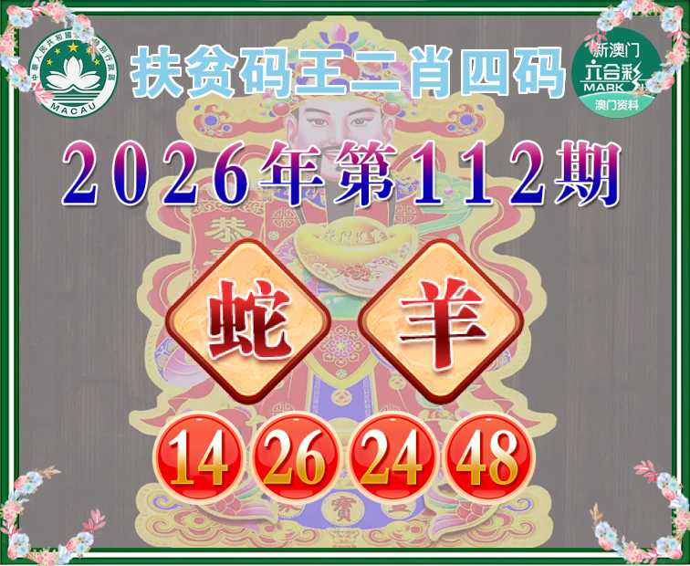 112期: 扶贫码王 🧩二肖四码🧩【蛇羊】【14.26.24.48】开:狗09