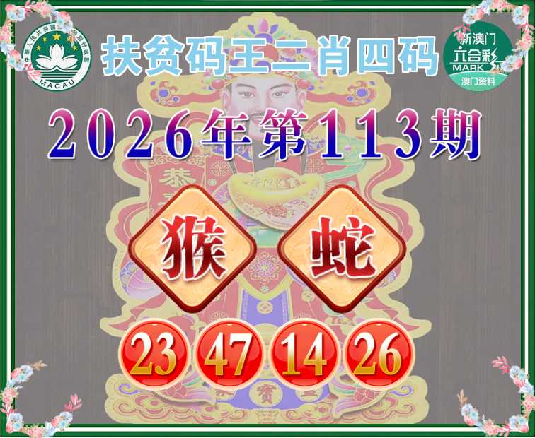 113期: 扶贫码王 🧩二肖四码🧩【猴】【23.47.14.26】开:蛇02