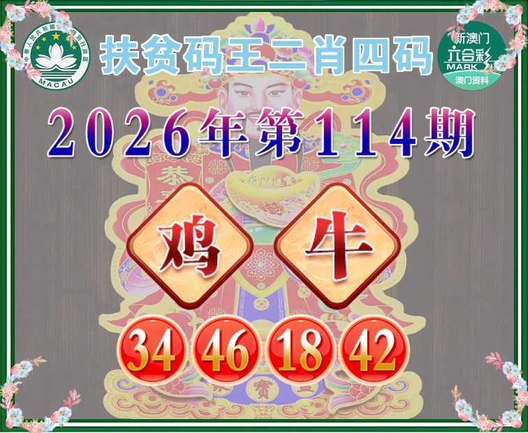 114期: 扶贫码王 🧩二肖四码🧩【鸡】【34.46.18.42】开:牛30