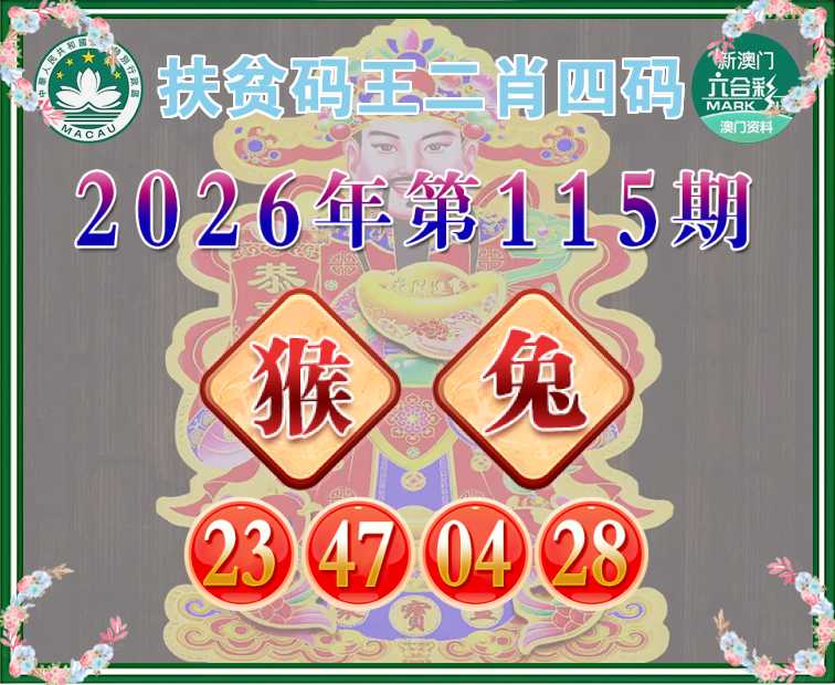 115期: 扶贫码王 🧩二肖四码🧩【猴】【23.47.04.28】开:兔04
