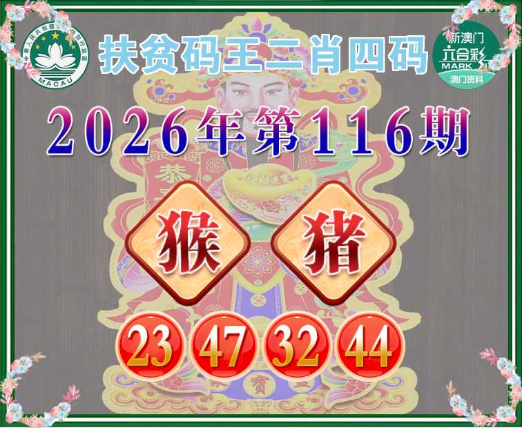 116期: 扶贫码王 🧩二肖四码🧩【猴猪】【23.47.32.44】开:鸡22