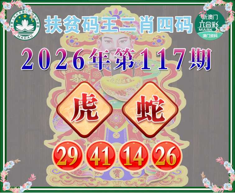 117期: 扶贫码王 🧩二肖四码🧩【虎蛇】【29.41.14.26】开:兔16