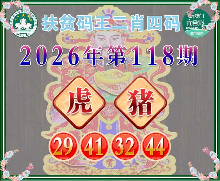 118期: 扶贫码王 🧩二肖四码🧩【虎】【29.41.32.44】开:猪08