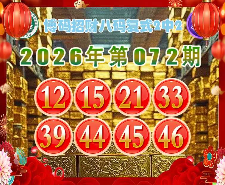 072期:〖博码招财〗 ♠️八码复式2中2♠️