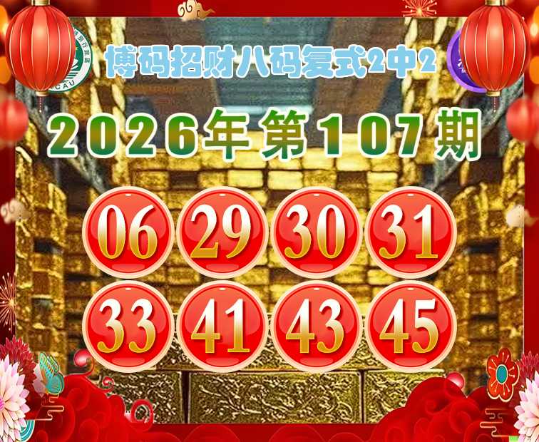 107期:〖博码招财〗 ♠️八码复式2中2♠️