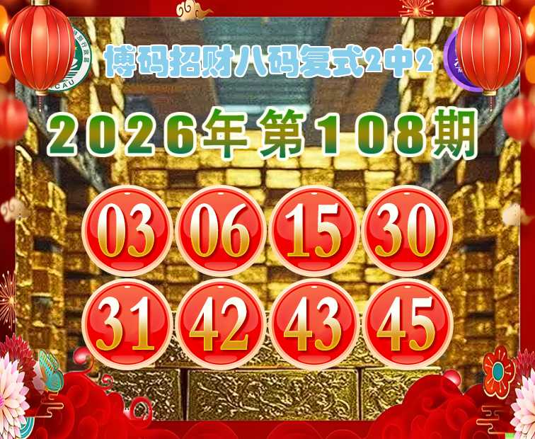 108期:〖博码招财〗 ♠️八码复式2中2♠️